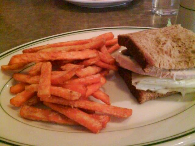 Mmm. I love sweet potato fries. Not having a deep fryer here at home (yet- my birthday is coming up) I often make a baked version. I also second the brussels sprouts, except we halve them, toss them in olive oil+salt+pepper, and roast them at 375 for about 30 minutes (stir once so they don’t stick to the pan).