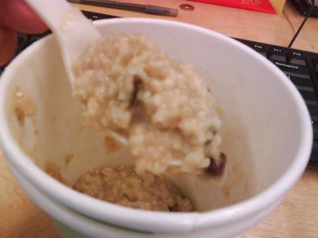 2 packets in a coffee cup + hot water = hot breakfast.   I don’t eat it every day, but when I was too rushed to eat at home it’s a nice option.