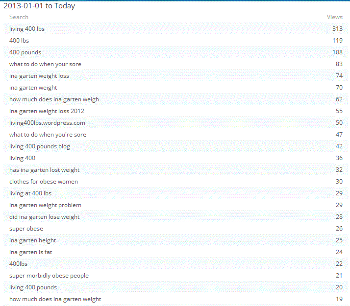 Variations on the blog topic: “400 lbs”, “400 pounds”, “super obese”.